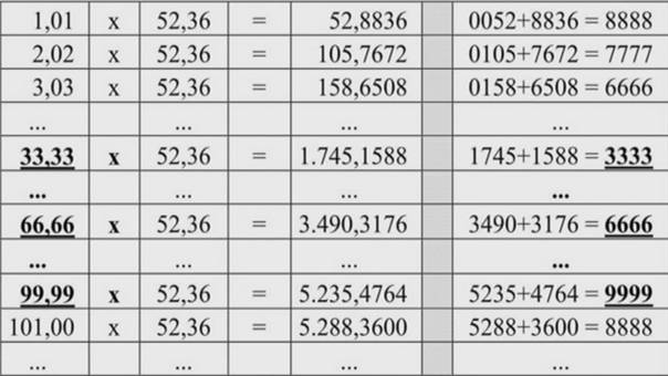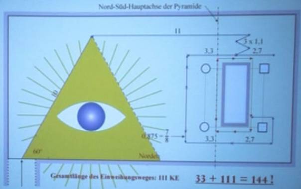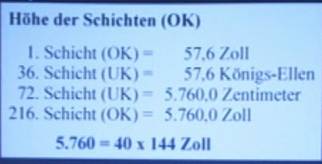(Klitzke) - Die Zahl 144.000 kommt in der Luther-Bibel mindestens 4mal vor - Der vedische Zyklus Satya-yuga hat eine Länge von 1.440.000 Jahre mit einer Übergangsphase (Sandhya), am Anfang und Ende von jeweils 144.000 Jahre. (Risi) - 1 Tag = 1.440 Minuten (Klitzke) - Adam im Hebräischen: 1-4-40 - Nord-Süd-Ausdehnung der Cheops-Pyramide: 1.440 sakrale Ellen - Längen der Mond-Pyramide in Mexiko in der Einheit Hunab - die Ost-West-Achse der Mykerinos-Pyramide in Giseh ist 10440 cm = 1+2+3+…144 - Einweihungsweg in der Königskammer (Cheops-Pyramide) vom 32. zum 33. Grad - Grundfläche des prophetischen Tempels in Giseh: 1.440 Quadratellen - Der Buchstaben-Code (gemäß des hebräischen Alphabet) auf der Ein-Dollarnote: 1.440 - Der Code aller vier Ecken auf der Ein-Dollarnote („ONE“ +1) (alles Klitzke) - Long Count Kalender der Maya:1 Baktun = 20 Katun = 144.000 Tage - Zahl ist Teil der Fibonacci-Sequenz und bildet somit Phi = 1,618… Verhältnis 2:3 , z.B. 144 und 216 (Klitzke) =360 = 144 + 216 = (12+12) + (6x6x6) = Quersumme bei beiden: 9 - Pentagram 144° und 216° = (360°) - Cheops-Pyramide hatte ursprünglich 216 (6x6x6) Schichtdicken sowie aus einer äußeren Verkleidungsschicht mit 144 (12 x12) Steinsschichten