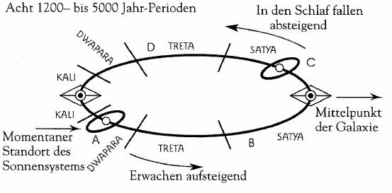 Nachtrag von uwe: Kali (1200), Dvapara (2400), Treta (3600) und Satya (4800)