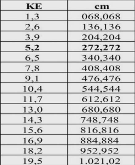 1 cm = 52,36 Ke;